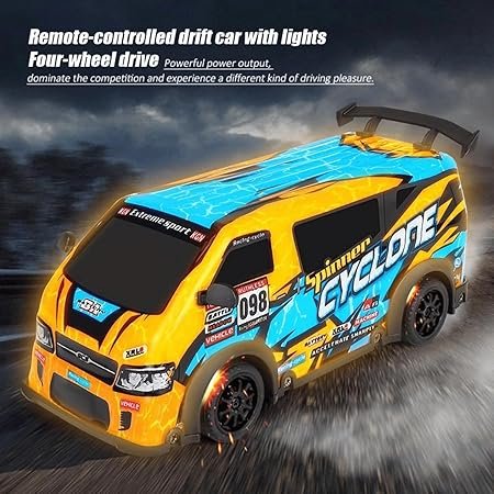 This RC drift car comes in a 1:18 scale size, which is perfect for both indoor and outdoor play. The size is big enough for better control and stability, while still being easy for kids to handle. The 4-wheel drive (4WD) system gives strong grip and balance, helping the car drift smoothly on flat surfaces like tiles, wooden floors, and smooth roads.