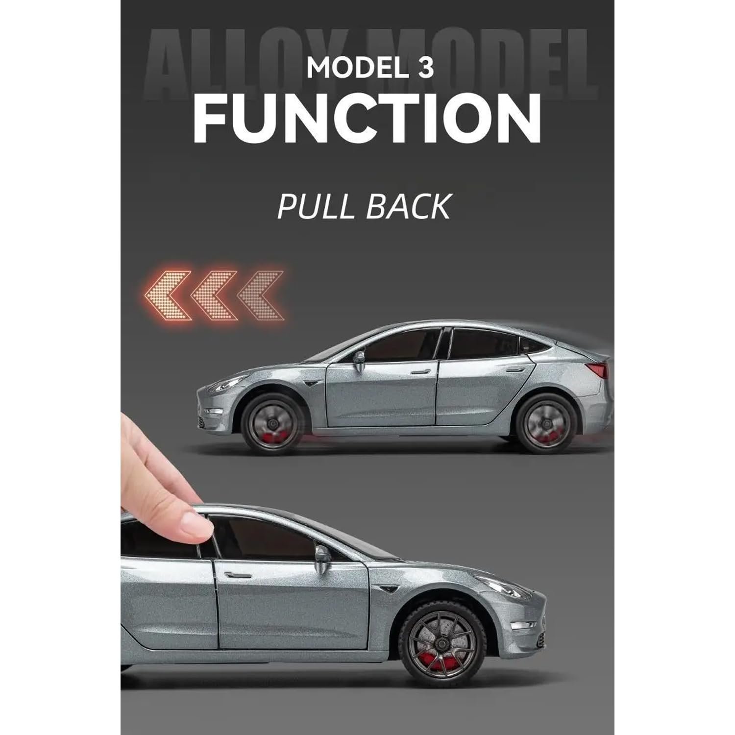 1:24 scale Tesla Model 3 die cast metal toy car with pull-back action. Big size, realistic design, and premium build for kids.