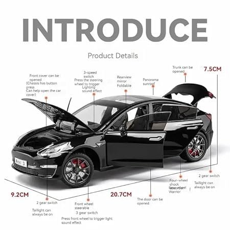 The 1:24 Scale Tesla Model 3 Die Cast Metal Toy Car is a modern and stylish toy vehicle designed for kids who love electric cars and realistic model toys. Inspired by the popular Tesla Model 3, this toy car offers a clean design, strong metal body, and smooth pull-back action, making it fun for daily play and perfect for display.