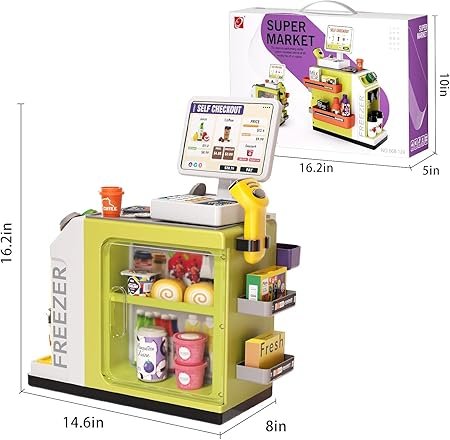 This toy supports early learning by developing hand-eye coordination, counting skills, and problem-solving ability. Kids enjoy pressing buttons, arranging items, and pretending to sell products, which keeps them active and focused. It is a great way to encourage screen-free play at home.