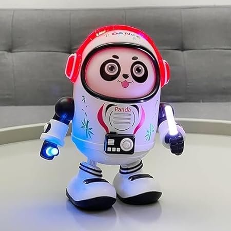 Dancing space panda toy with music and lighting for kids. Fun moving toy that supports sensory play, music learning, and indoor fun.
