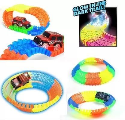 The dazzle track pieces are flexible and easy to bend, twist, and shape. Kids can design their own racing paths in different patterns like circles, waves, or long tracks. The colorful track looks attractive and keeps children curious and involved. The glowing effect adds extra excitement, especially during indoor play or low light conditions.
