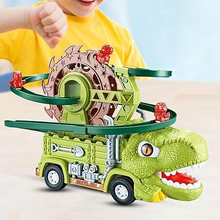 The toy works in a loop system where the car climbs up the stairs automatically and slides down the racing track. Kids love watching the car move again and again, which creates a fun and satisfying play experience. The dinosaur design adds extra excitement and makes this toy more attractive for young kids who love animals and racing toys.