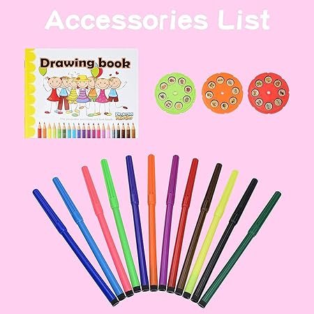 Kids drawing projector toy designed to inspire creativity and develop motor skills. Featuring 24 patterns and markers for endless artistic fun.